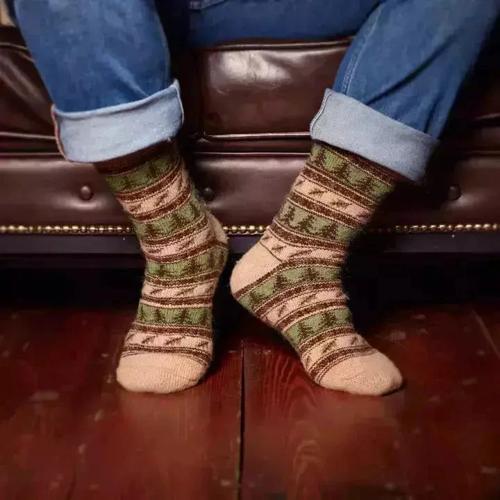 These socks will bring out the woodsman in you with their forest colors and rustic design. You can almost smell the smoke from your campfire, hear the cry of a hawk searching for prey, and feel the power of nature. Perfect for hunting, fishing, skiing, or just relaxing at home, these woolen socks are made to keep a man warm and comfortable no matter where you are.